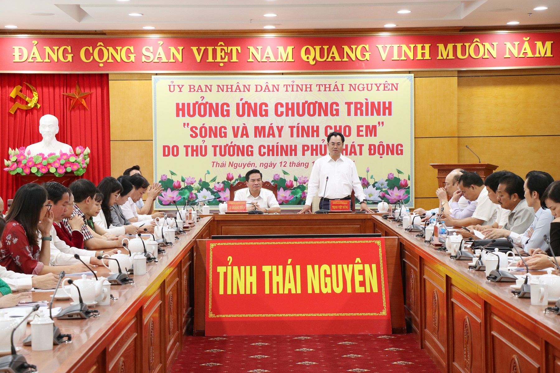 Chiều 12/10, UBND tỉnh Thái Nguyên đã tổ chức tiếp nhận hơn 8,3 tỷ đồng từ các doanh nghiệp, doanh nhân hưởng ứng Chương trình "Sóng và máy tính cho em” do Thủ tướng Chính phủ phát động. Đồng chí Trịnh Việt Hùng, Ủy viên dự khuyết Ban Chấp hành Trung ương Đảng, Phó Bí thư Tỉnh ủy, Chủ tịch UBND tỉnh dự và chủ trì Chương trình. Tham dự có đồng chí Lê Quang Tiến, Phó Chủ tịch UBND tỉnh; đại diện các sở, ngành của tỉnh; Hiệp hội doanh nghiệp tỉnh và các doanh nghiệp, doanh nhân trên địa bàn tỉnh.