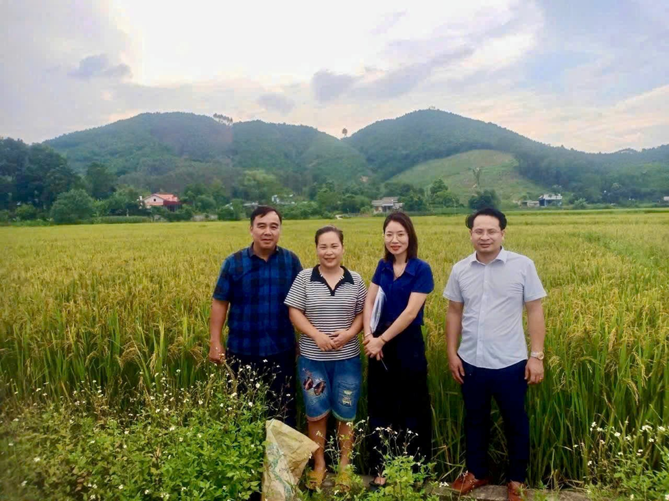 Đại diện Phòng Quản lý khoa học - Sở KH&CN kiểm tra mô hình trình diễn sản xuất giống lúa ĐT120