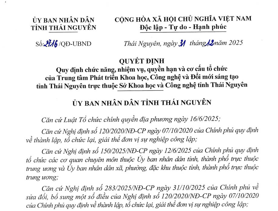 ĐƠN VỊ SỰ NGHIỆP TRỰC THUỘC SỞ KHOA HỌC VÀ CÔNG NGHỆ TỈNH THÁI NGUYÊN