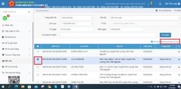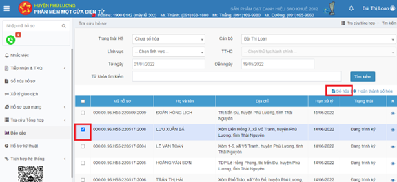 Bước 5: Kiểm tra các hồ sơ đã được ghi nhận hoàn thành số hóa ở trạng thái hồ sơ “Đã số hóa”.