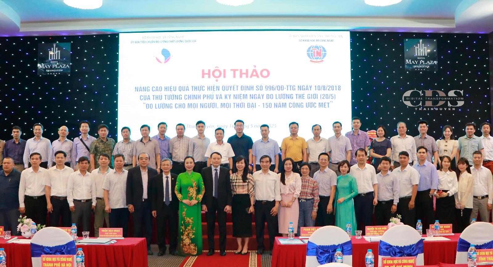 Sáng 16/5, tại Khách sạn May Plaza, Sở Khoa học và Công nghệ tỉnh Thái Nguyên phối hợp với Ủy ban Tiêu chuẩn Đo lường Chất lượng Quốc gia tổ chức Hội thảo khoa học với chủ đề “Nâng cao hiệu quả thực hiện Quyết định số 996/QĐ-TTg ngày 10/8/2018 của Thủ tướng Chính phủ và kỷ niệm Ngày Đo lường thế giới (20/5) “Đo lường cho mọi người, mọi thời đại - 150 năm Công ước Mét”.