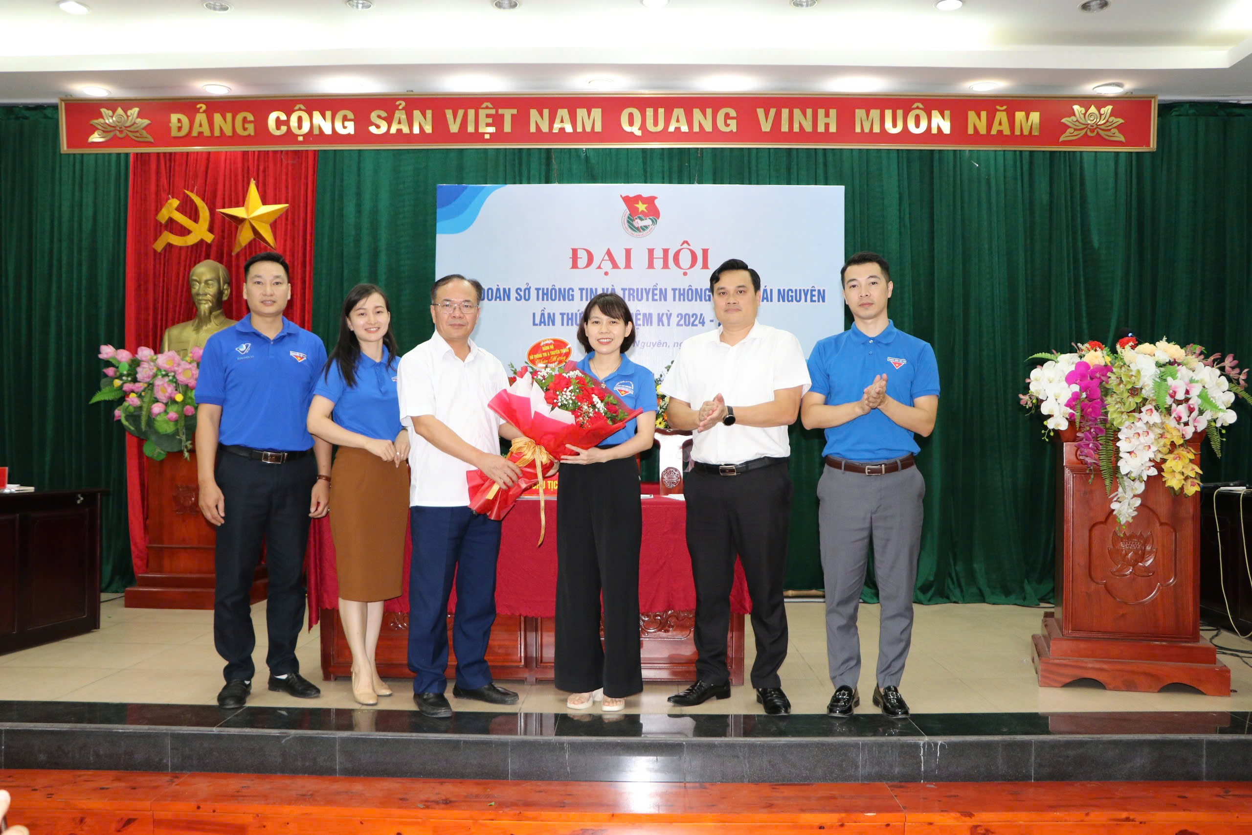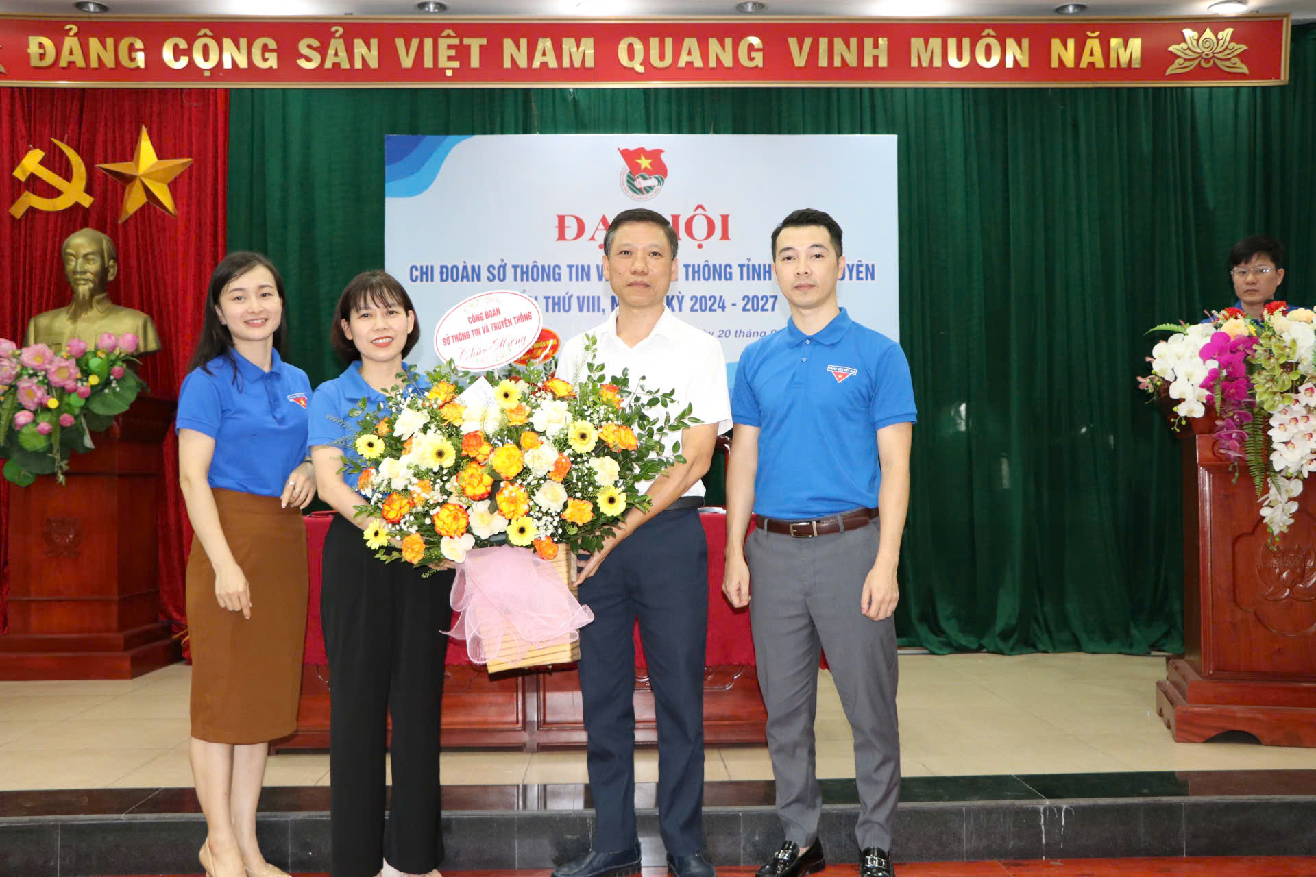 Các đồng chí đại diện Đảng ủy, Ban Lãnh đạo, Công đoàn Sở tặng hoa chúc mừng BCH Chi đoàn Sở TT&TT nhiệm kỳ 2024-2027
