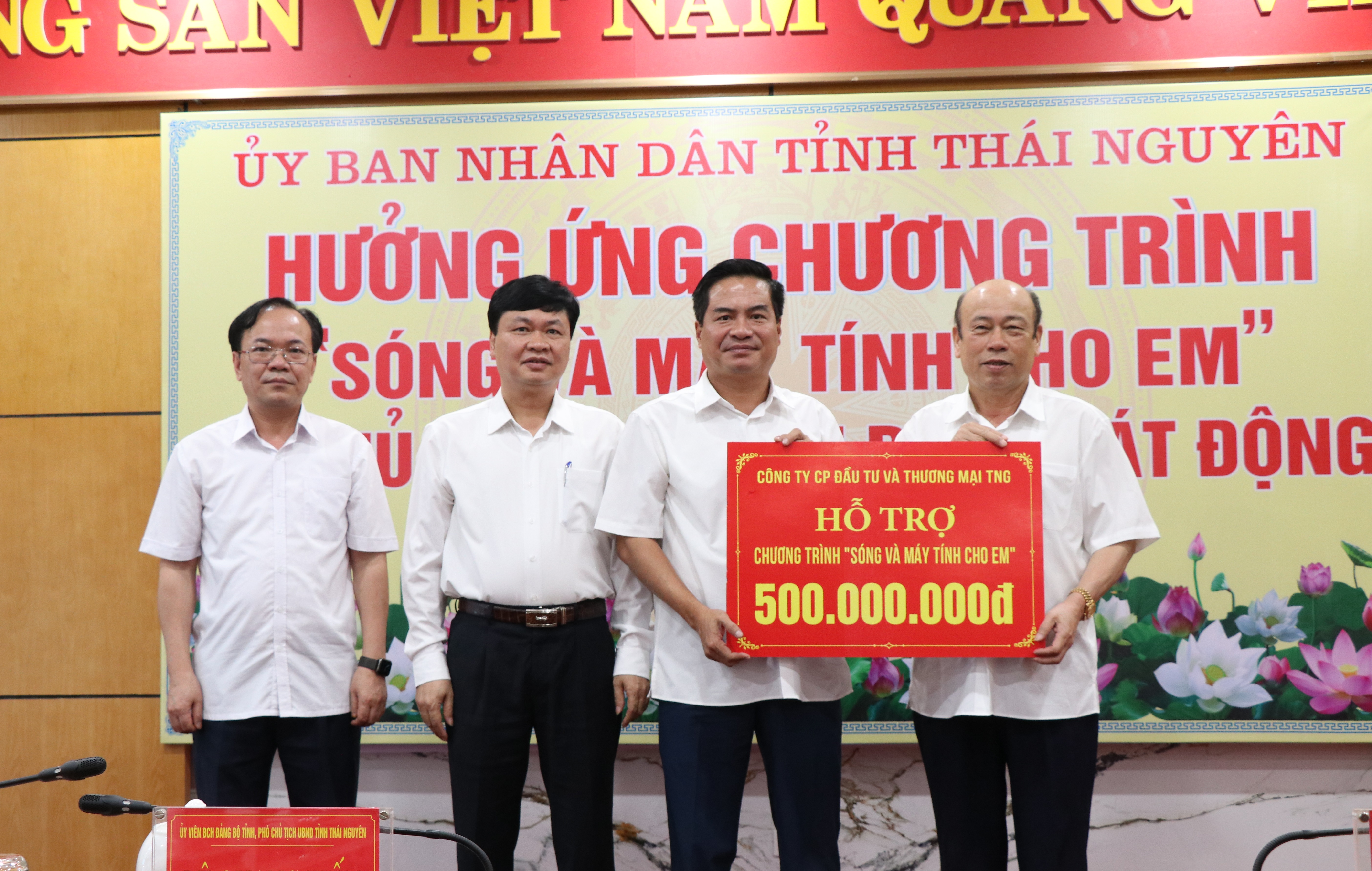 Đồng chí Chủ tịch UBND tỉnh nhấn mạnh quyết tâm thực hiện mục tiêu tỉnh Thái Nguyên sẽ không còn học sinh nào không đủ điều kiện học tập trực tuyến do thiếu trang thiết bị phục vụ học tập, đồng thời kêu gọi và mong muốn các tổ chức, cá nhân, cộng đồng doanh nghiệp, doanh nhân tiếp tục đồng hành với tỉnh trong thực hiện Chương trình “Sóng và máy tính cho em” bằng cách ủng hộ tiền mặt, hiện vật. Tỉnh sẽ cử đơn vị đầu mối, phân công các ngành rà soát để đảm bảo thống kê đủ, đúng số lượng học sinh cần được hỗ trợ, qua đó phát huy ý nghĩa nhân văn cao cả của Chương trình.